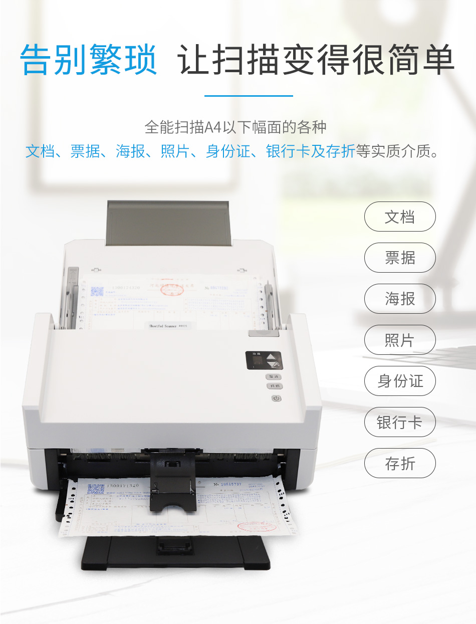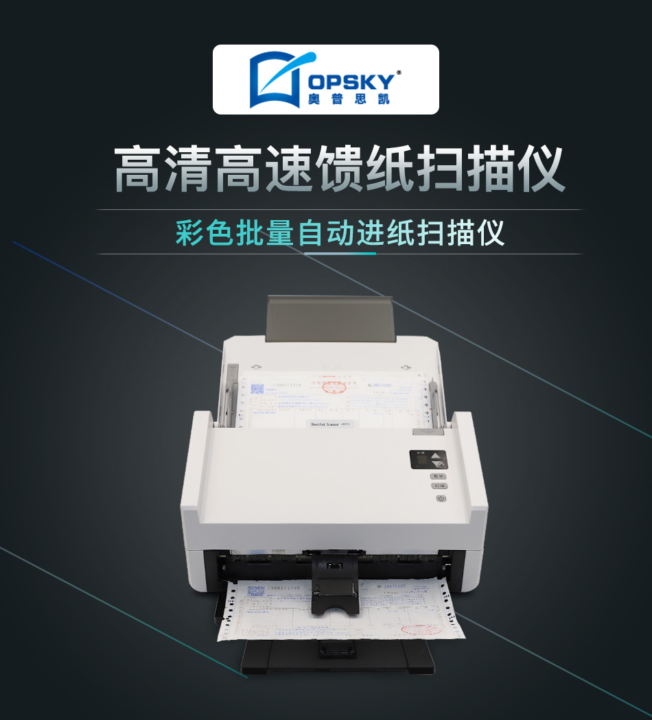 奧普思凱(OPSKY) 饋紙式掃描儀高清彩色雙面連續(xù)大容量自動進紙辦公設備發(fā)票文檔多介質掃描 OK8230雙面彩色掃描儀(45頁90面/分鐘)